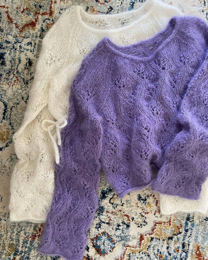 - Kid mohair/silk yarn (7–10 skeins depending on size)