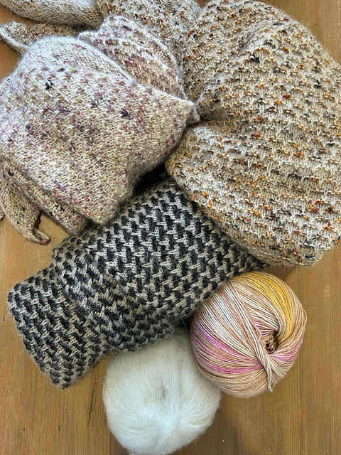 - Two contrasting lace or fingering weights (e.g. Suri Cloud + sock blend)