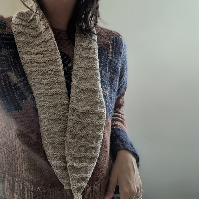 With gentle shaping and a rhythmic stitch pattern, this scarf keeps your hands engaged while staying calm and predictable. Written and charted instructions let you knit your way, making it perfect for quiet evenings or travel knitting.