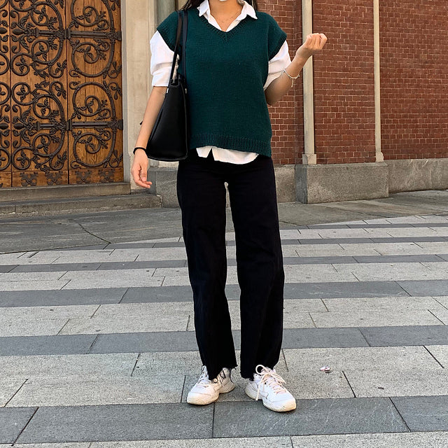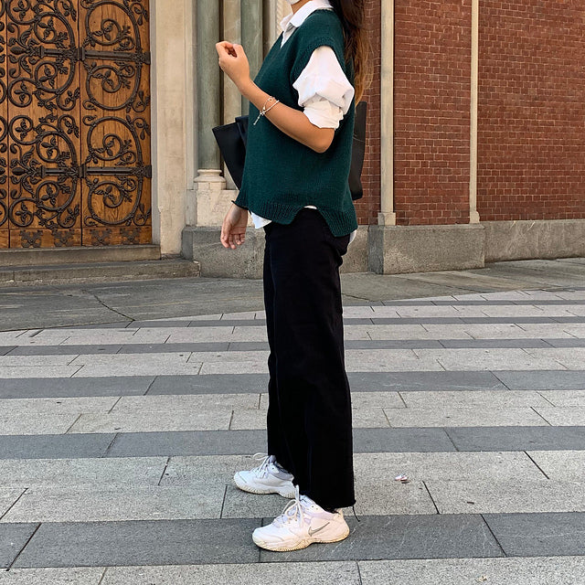 Worked top-down, it lets you adjust the length as you go and try on for a perfect fit. The gentle shoulder shaping and side slits give this vest its signature drape — relaxed yet refined, ideal over crisp shirts or flowy dresses.